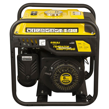 Генератор інверторний бензиновий 220В 3.0/3.5кВт 7л 4-х тактний ручний запуск SIGMA (5710831) побутову техніку або обладнання. Інверторні генератори незамінні, якщо необхідно подати електроенергію на техніку або електроприлади, дуже чутливі до якості електрики. її до звичайного бензинового генератора. Для зручності переміщення та мобільності генератора можна встановити Колеса та ручки (комплект) SIGMA (5714311) Особливості: Надійна робота з чутливою та високоточною електронікою Мідна обмотка альтернатора Обладнаний системою захисту від недостатнього рівня масла Низьке споживання палива Економічний режим Характеристики: Модель двигуна: 170FP Напруга (В): 220 Частота (Гц): 50 Номінальна вихідна потужність (кВт): 3.0 Максимальна вихідна потужність (кВт): 3.5 Вихід постійного струму (В)/(А): 12/8. (к.с.) / робочий об'єм двигуна (см³): 8.0 / 223 Витрата палива (л/год): 1.1 Об'єм масляного картера (л): 0.6 Час безперервної роботи (год): 6 Система запуску: ручна Рівень шуму (Дб): 78 Розміри (4м7): 25.5