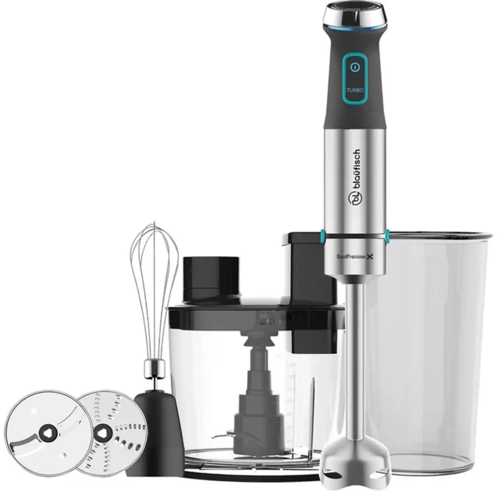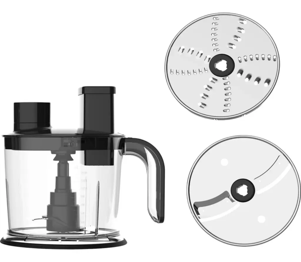 | Комплектація | Блендер, Великий подрібнювач, Мірний стакан, Вінчик, Інструкція, Гарантійний талон, Диск для подрібнення, Диск для шаткування |