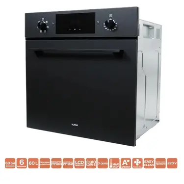 Об'єм та потужність: З об'ємом 60 літрів та максимальною потужністю 2400 Вт, духова шафа забезпечує швидке та рівномірне приготування великих страв.