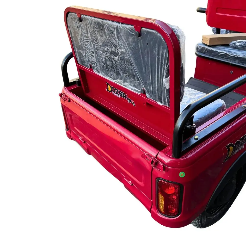 Електротрицикл DOZER Model 6 — це сучасний трансформер, який поєднує в собі функціональність, комфорт і надійність. Його унікальна конструкція дозволяє легко змінювати конфігурацію для режимів «водій + пасажир» або «водій + вантаж», що робить трицикл універсальним рішенням для особистого використання або комерційних завдань. Оснащений свинцево-кислотною батареєю 72V-20AH, він забезпечує запас ходу до 60 км, а гідравлічні амортизатори з пружинами гарантують плавний хід навіть на нерівностях. Барабанні гальма, LED фара, РК-дисплей і звуковий сигнал створюють комфортні та безпечні умови керування.