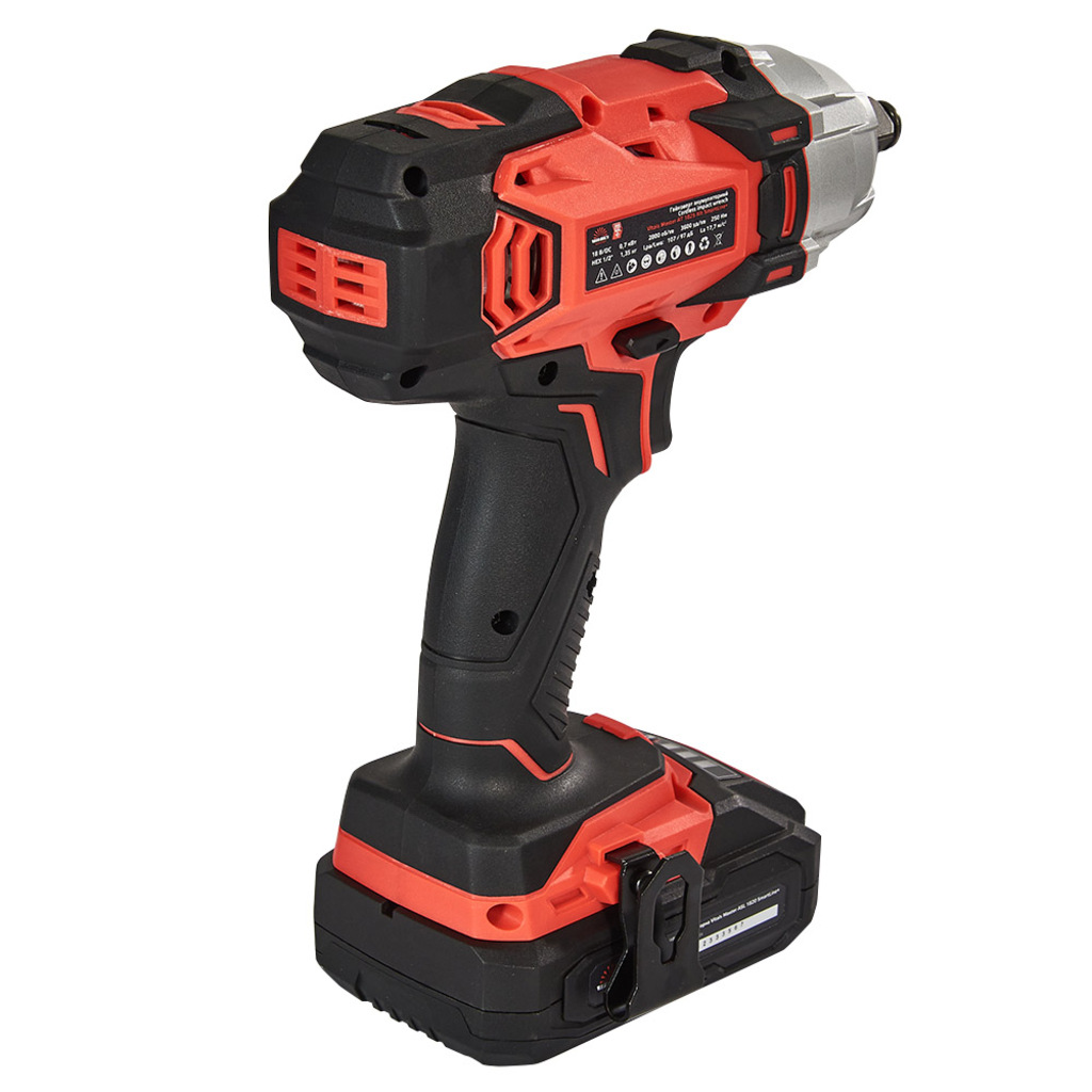 Гайкокрут має високий крутний момент 250 Нм у поєднанні з типом патрона квадрат 1/2", що дозволяє легко і надійно закріплювати гайки. Високий крутний момент забезпечує ефективність роботи з різними матеріалами та вимогливими завданнями.