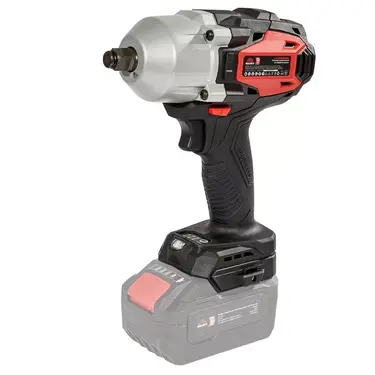 - Електронне регулювання крутного моменту дозволяє налаштувати потрібну силу затягування гайок з великою точністю.