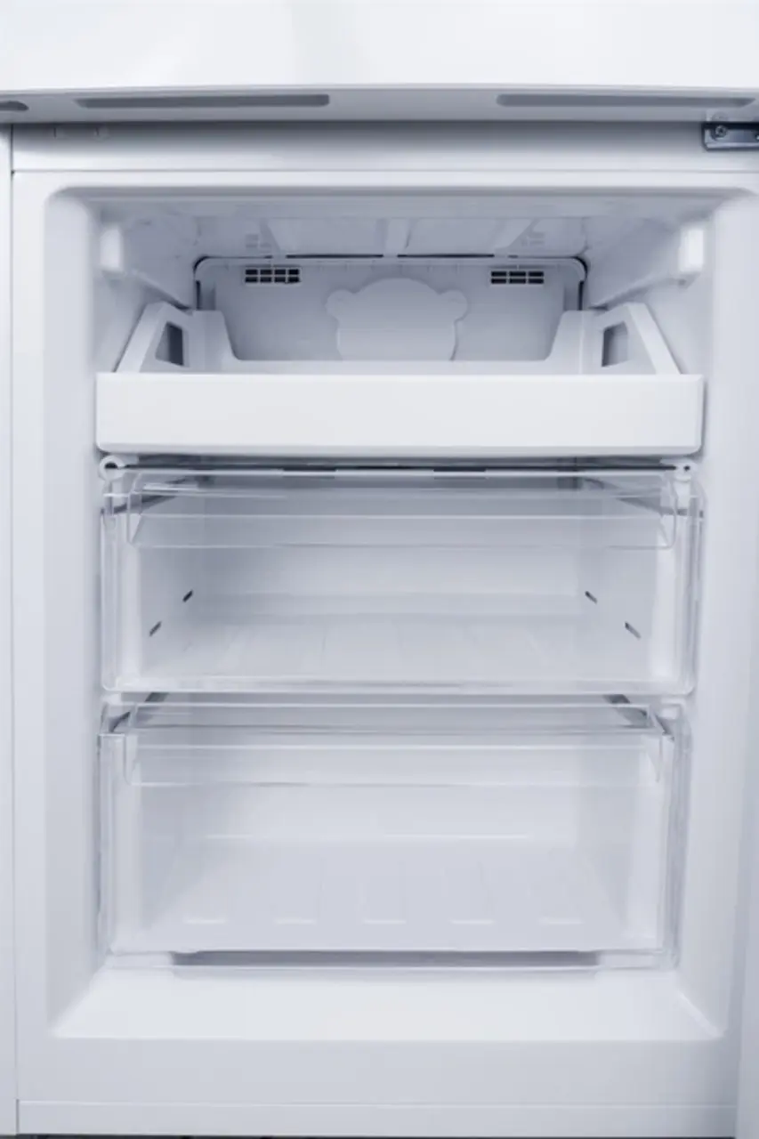 Електронне керування з LED-індикацією дозволяє зручно виставляти потрібні параметри та слідкувати за режимами роботи. Компресор у холодильнику звичайного типу, надійний і простий у використанні. Річне енергоспоживання становить 284 кВт·год, що відповідає класу A+, забезпечуючи баланс між економічністю та продуктивністю. Робочий шум на рівні 41 дБ не створює дискомфорту в приміщенні.