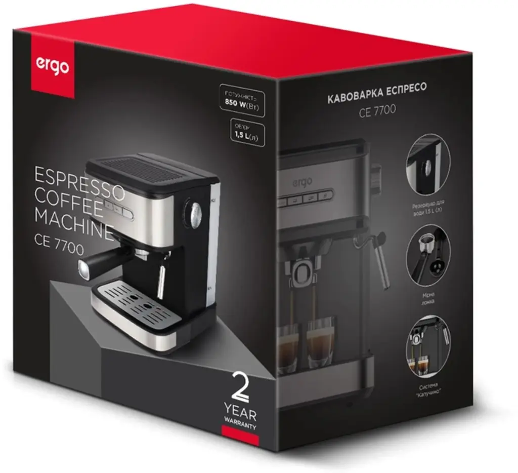 Комплектація -Кавоварка еспресо, мірна ложка-темпер, інструкція, гарантійний талон