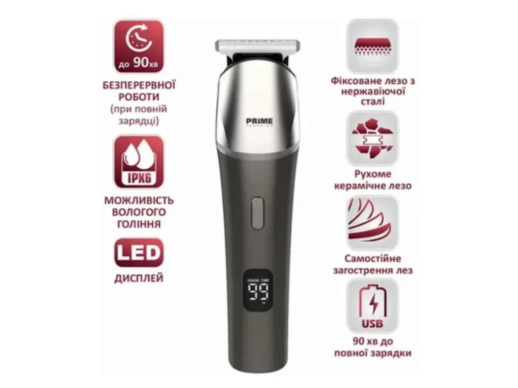 Кількість насадок | Стрижка: 1, 3, 6, 9, 12 мм Тример: 4-5,5 мм |