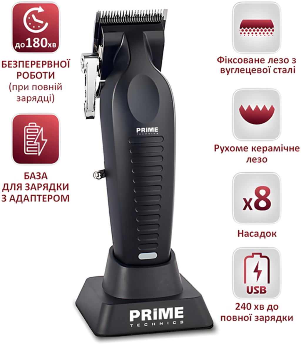 Машинка для стрижки PRIME Technics PHT 520 CCB є високоякісним пристроєм для домашнього та професійного використання. Ось основні характеристики та особливості цієї моделі: