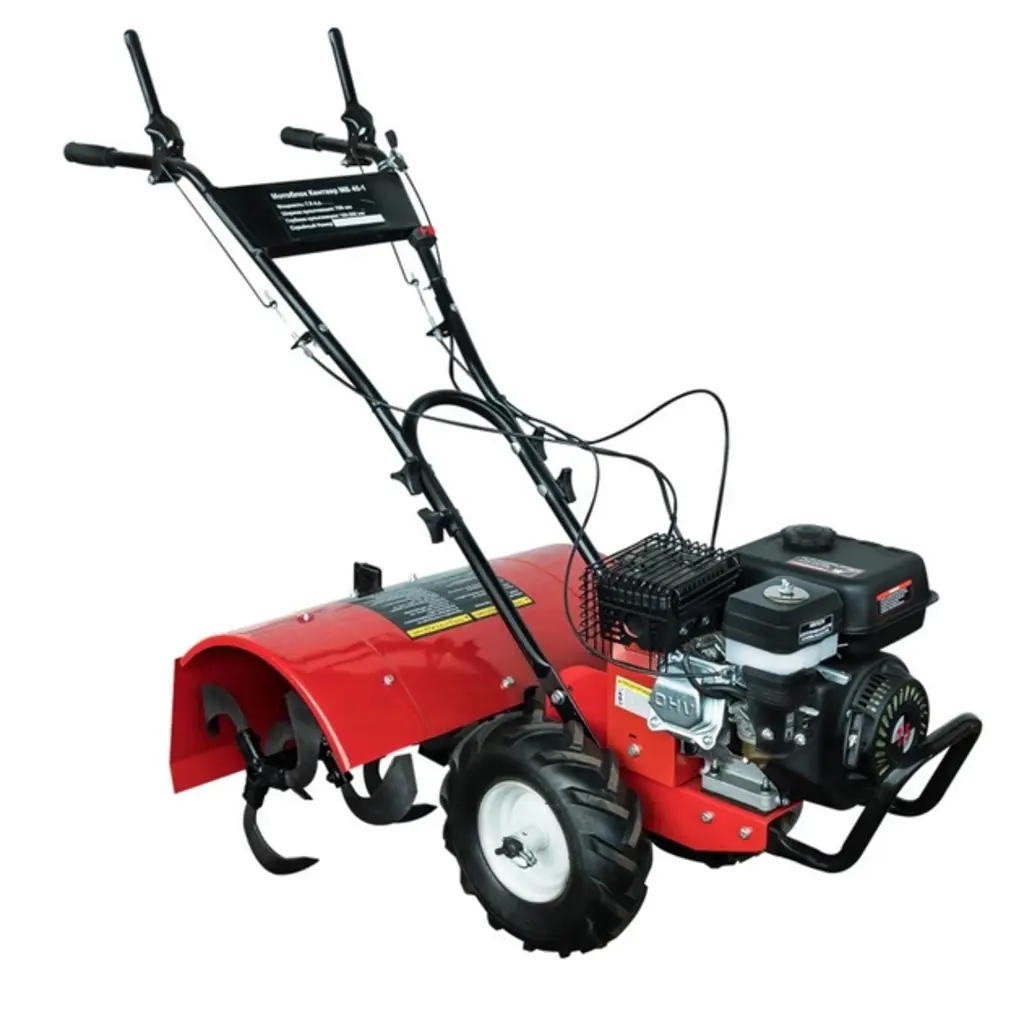 Недорога, але дієва машина ефективно зробить свою роботу. Головна особливість агрегату полягає у бензиновій силовій установці з повітряною системою охолодження. Завдяки семи кінським силам потужності апарат без проблем обробить площу в 50 соток.