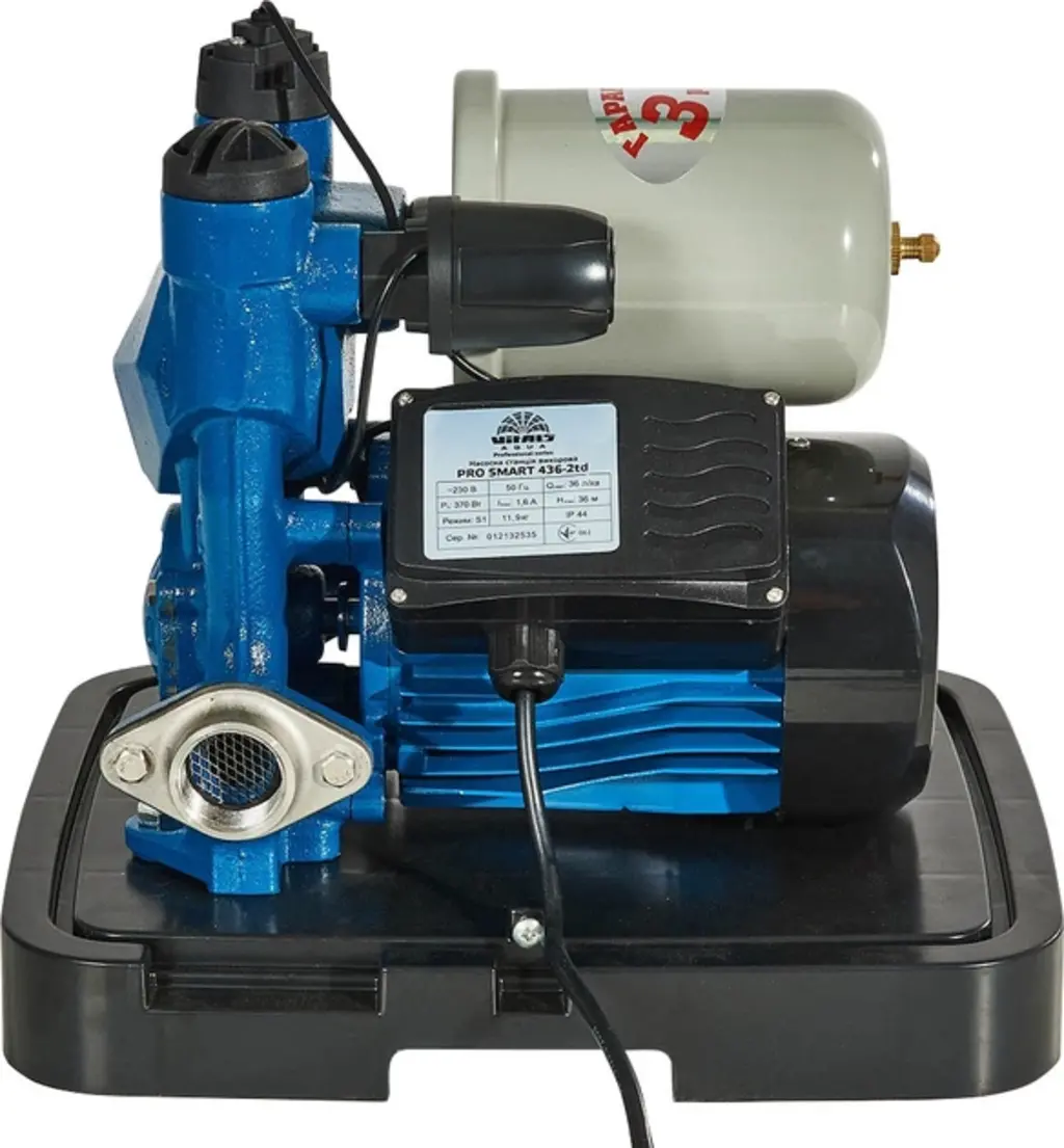 Станція Vitals aqua PRO SMART 436-2td inline box оснащена консольним роторним вихровим самовсмоктуючим насосом серії PQ. Насоси даного типу стабільно працюють за наявності у воді великої кількості повітряних бульбашок, найчастіше їх використовують у тих випадках, коли необхідно отримати великий тиск води при невеликому обсязі перекачування. Щоб уникнути частих включення та вимикання насоса, а також щоб тиск у системі змінювався не стрибкоподібно, а плавно, в конструкції станції передбачений гідроакумулятор (сталевий розширювальний бак з еластичною мембраною) ємністю 2 літри.