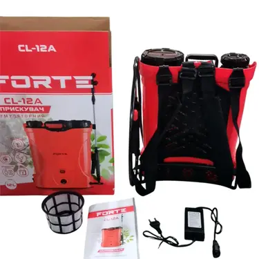 Акумуляторний обприскувач Forte CL-12A швидко впорається з розпорошенням рідких добрив для обробки ягідних та фруктових культур. Цей обприскувач здатний працювати тривалий час від заряду акумулятора, показуючи при цьому високу продуктивність та дозволяючи розпорошувати препарат у широкому радіусі. Регулювання потужності струменя розпилення дозволить максимально ефективно витрачати розчин для обробки великих площ, так і невеликих необроблених ділянок.