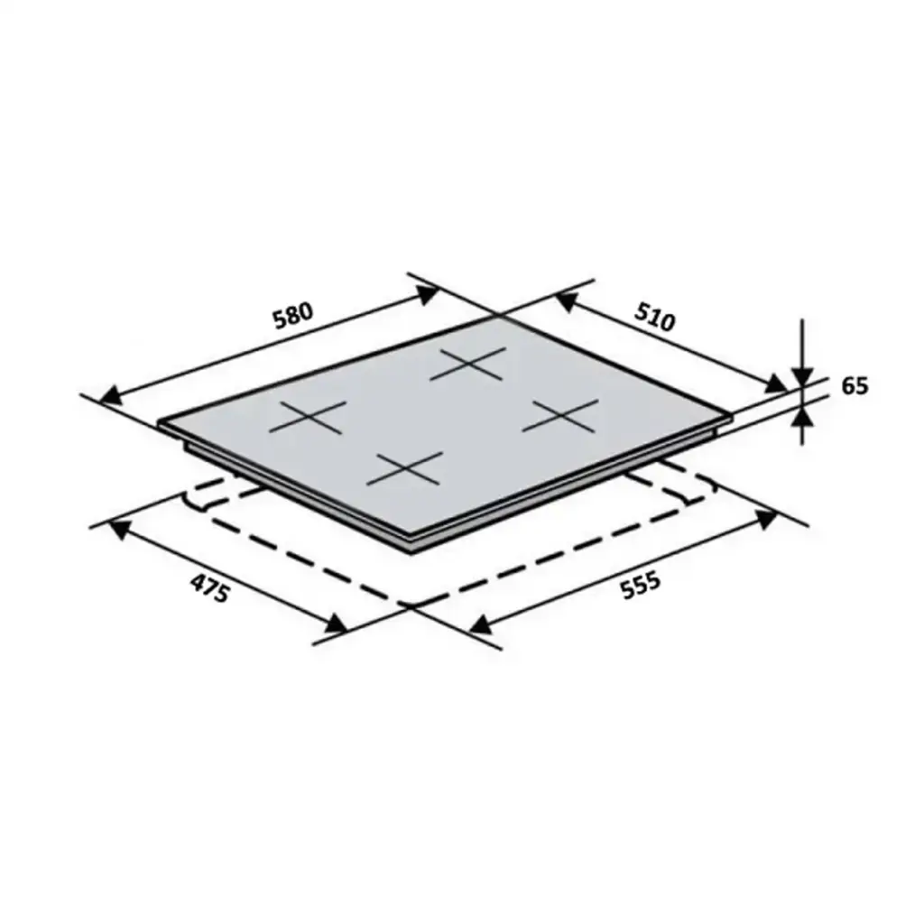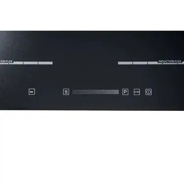- 2 FLEX-зони розміром 380x180 мм, кожна потужністю 3,0/3,6 кВт. Ці зони можуть працювати як окремі конфорки або об'єднуватися в одну велику для посуду нестандартних розмірів.