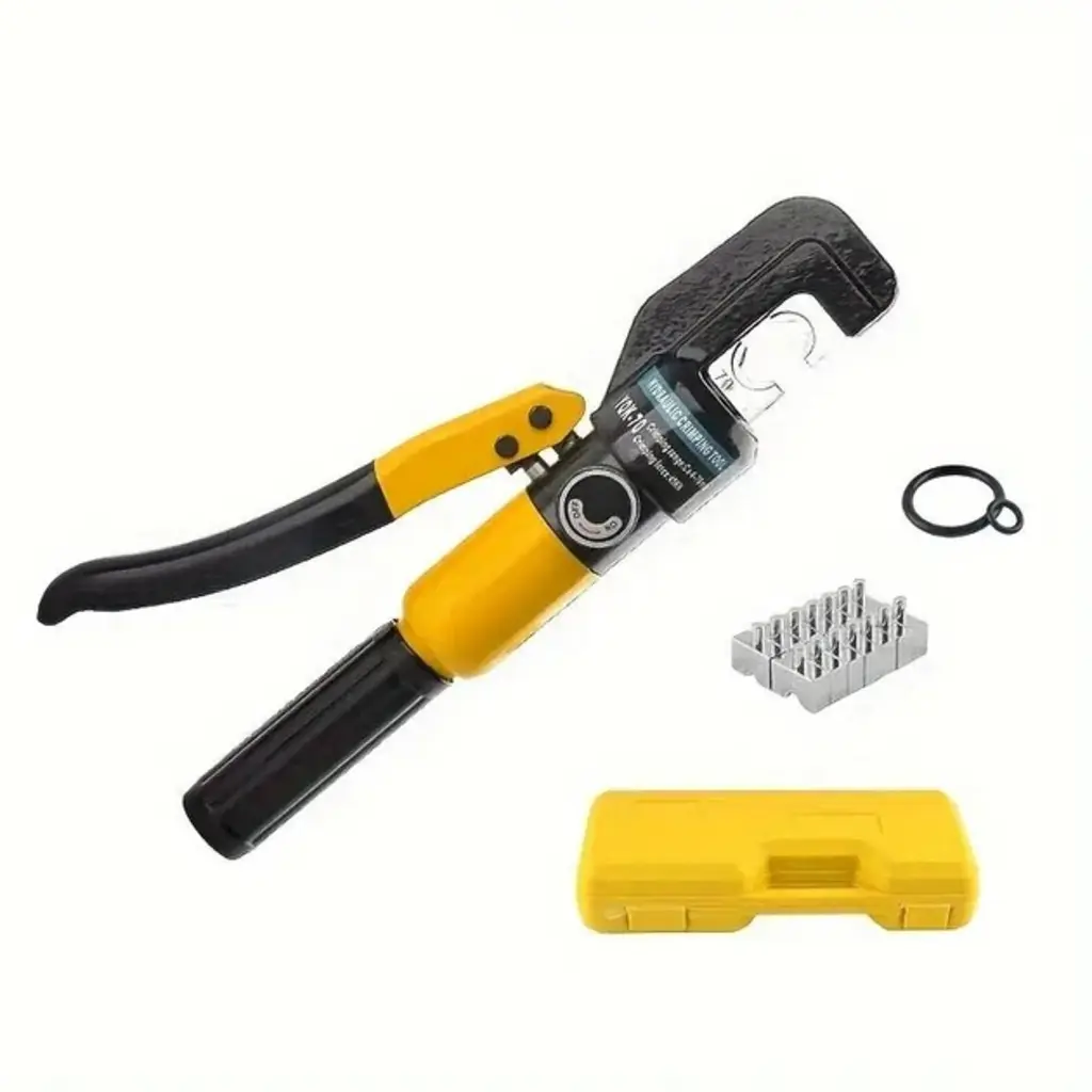 Кабельний прес дуже компактний, має С-образну головку і поставляється в зручному пластиковому кейсі з набором пресуючих матриць шестигранної форми.