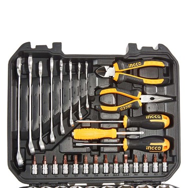 Набор инструмента INGCO предназначен для различных работ в автомастерской и содержит 100 предметов, а именно: