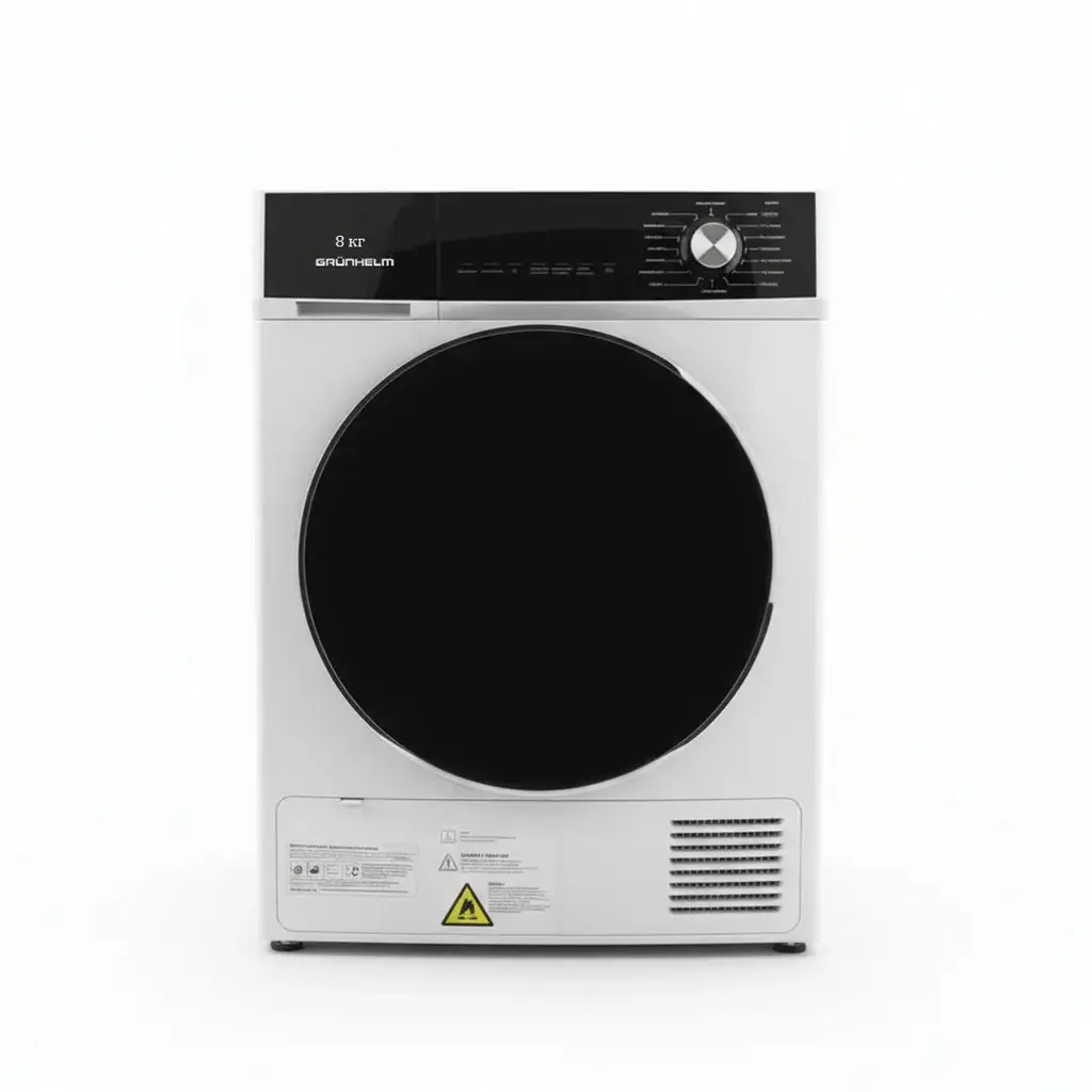 Сушильна машина GDW-8PD1WB (біла, 8 кг. тепловий насос) Grunhelm - це сучасне та високотехнологічне рішення для дбайливого та максимально енергоефективного сушіння білизни. Завдяки технології теплового насоса, вона не лише ідеально висушує до 8 кг білизни, але й значно знижує ваші витрати на електроенергію.