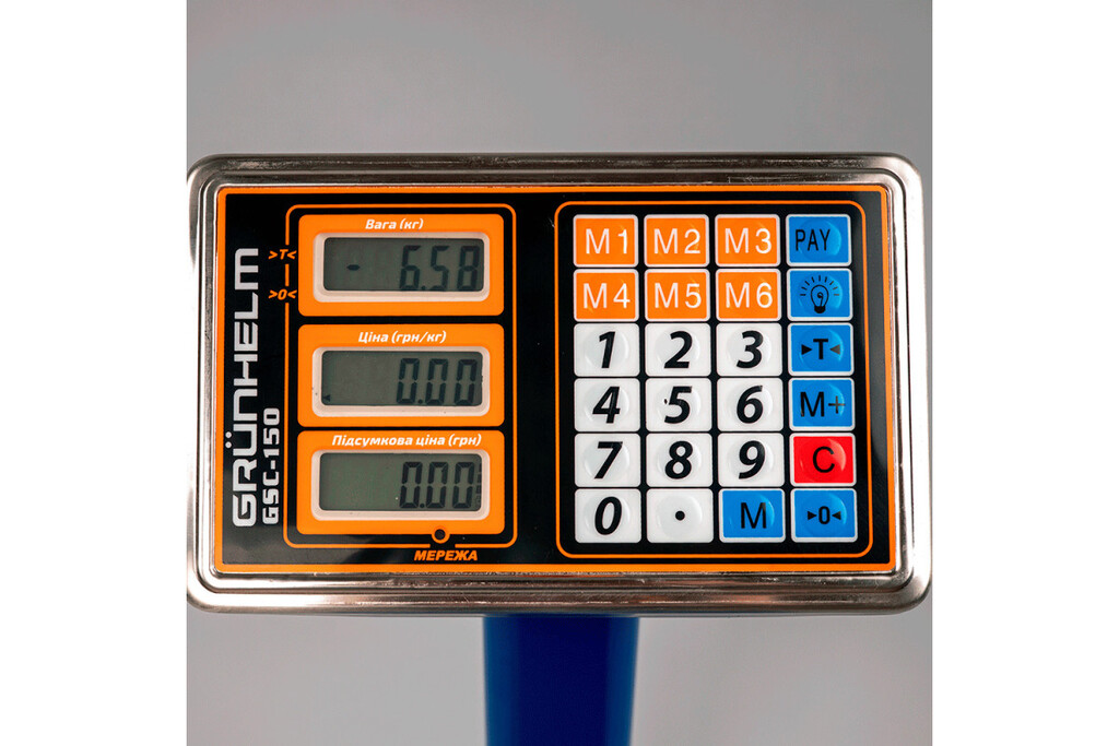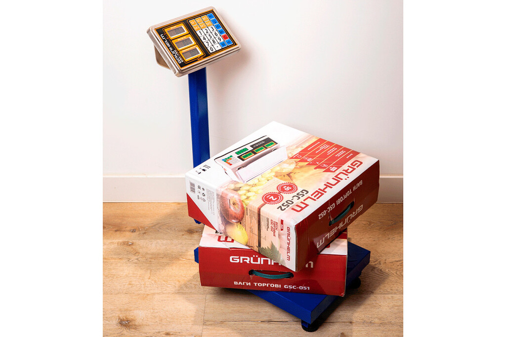 Торгові ваги GSC-300 Grunhelm - зручна та практична модель з калькулятором та межею зважування 50 кг. Відмінний варіант для роботи в магазині, кафе, складах, ринковій торгівлі. Модель працює від мережі чи акумулятора. Ніжки регулюються. Терези виготовлені з нержавіючої сталі. Терезами зручно керувати за допомогою клавіш, вся інформація відображається на ЖК дисплеї. Є функції обнулення ваги, тарування, а також індикатор навантаження та низького заряду батареї.