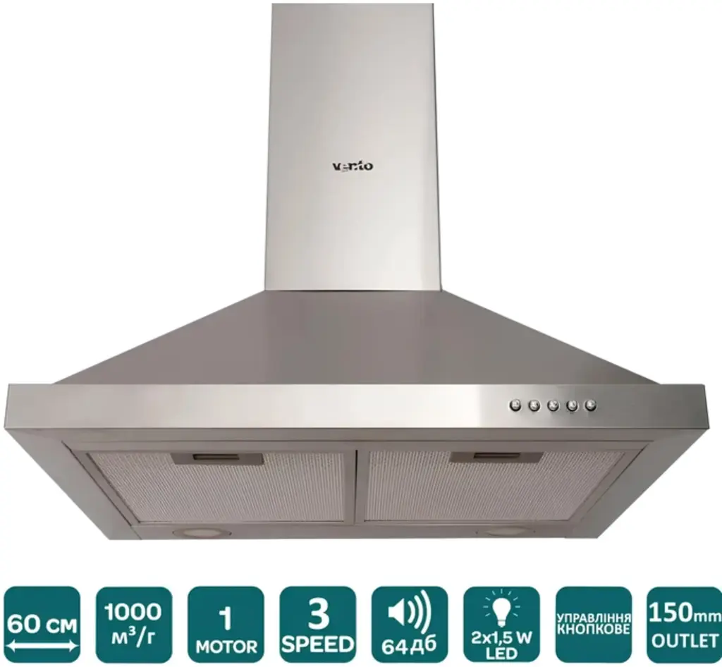 - Функціональність: 3 швидкості, 2 режими роботи (відведення/рециркуляція), LED-підсвітка.