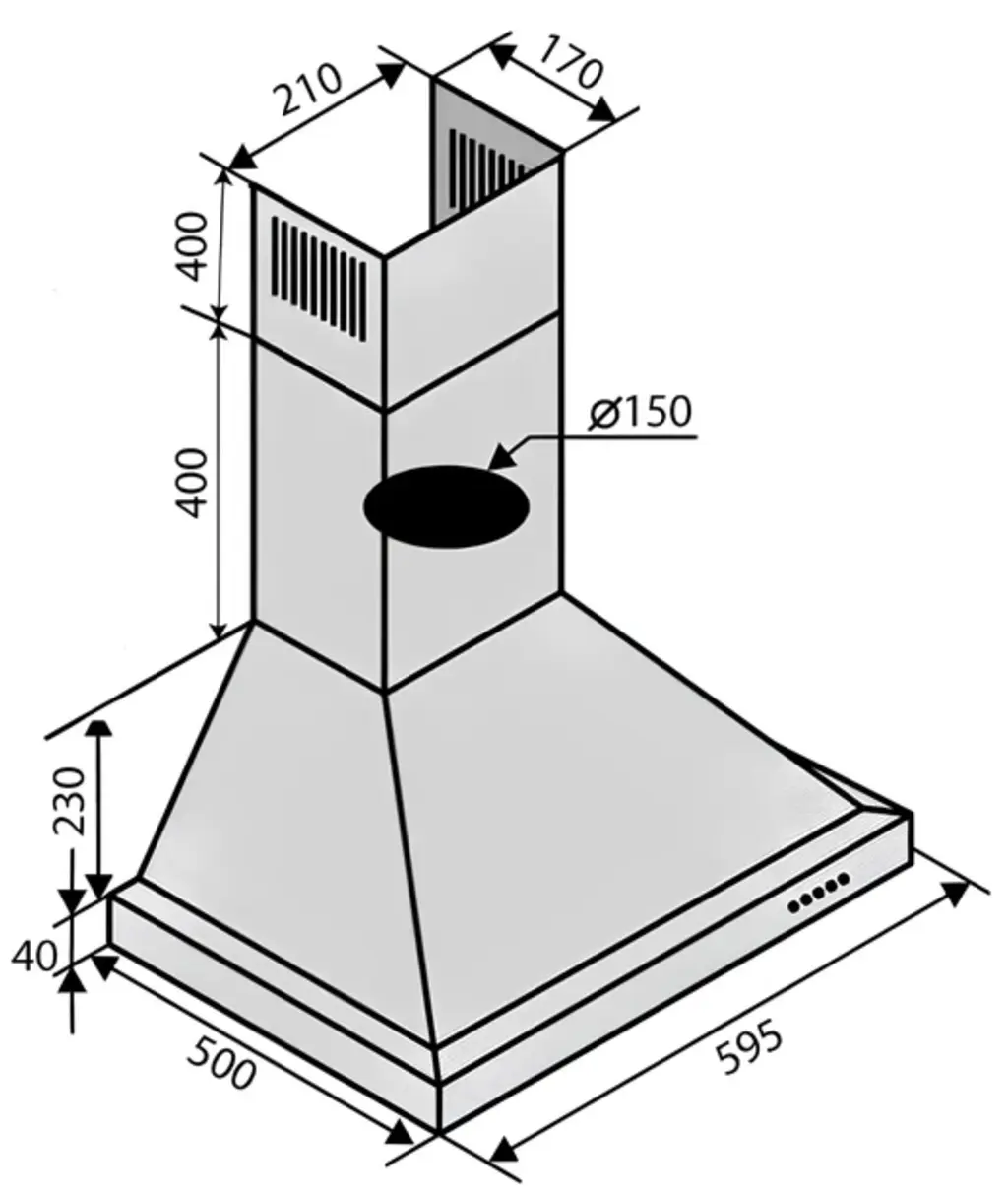 - Діаметр вихідного отвору: 150 мм