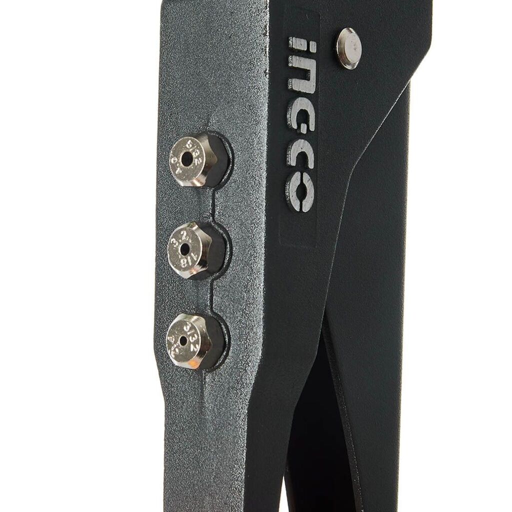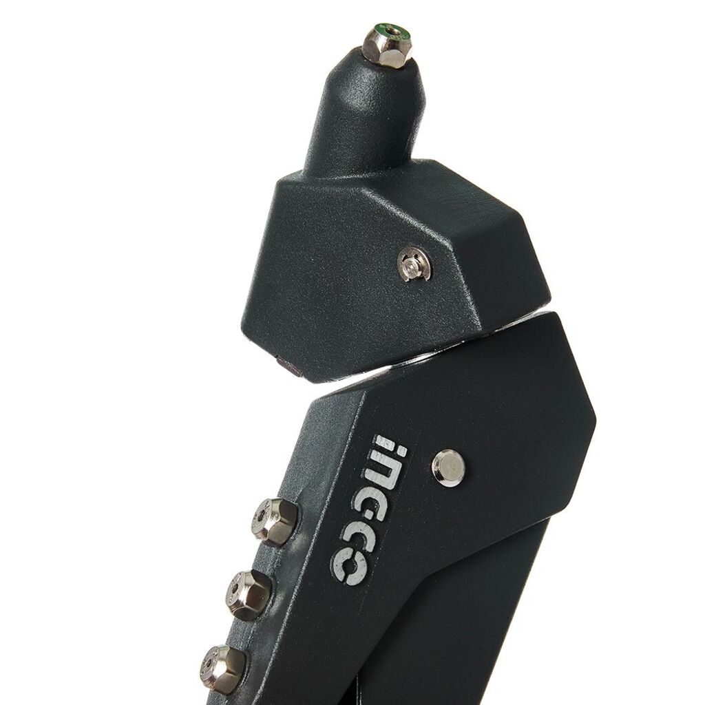 Для роботи у важкодоступних місцях; Діаметри заклепок 2,4; 3,2; 4,0; 4,8 мм; Матеріал: сталь + алюміній; Для клепання заклепок різних діаметрів для з`єднання між собою декількох деталей у процесі будівельних, оздоблювальних або інших видів робіт; Головка інструмента обертається на 360 град. для роботи у важкодоступних місцях; Робоча частина виготовлена із алюмінієвого сплаву.